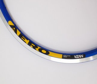 Aro Aero Vzan Escape 24" V-Brake Azul. Fabricante: Vzan Modelo: Escape Tamanho: 24 Tipo: Parede dupla Freios V-brake Furação: 36 Furos Material: Alumínio Peso: 430grs Cor: Azul.