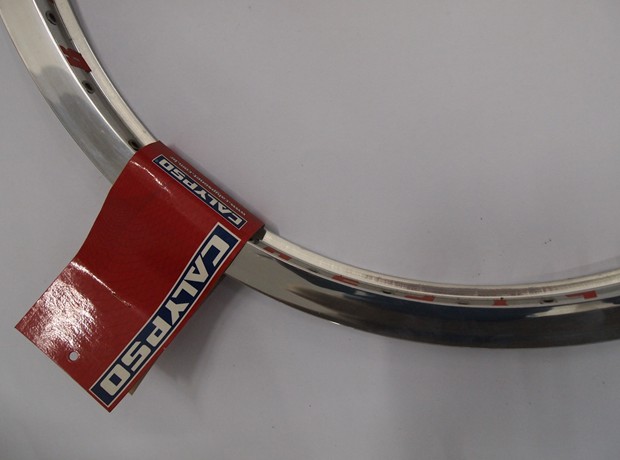 Aro CALYPSO 24X36F FREIO DISCO. Fabricante: CALYPSO Modelo: BRUTUS Tamanho: 24" 330X240mm Tipo: Parede dupla Freios Disco Furação: 36 Furos Material: Alumínio Peso: 800grs Cor: Cromado