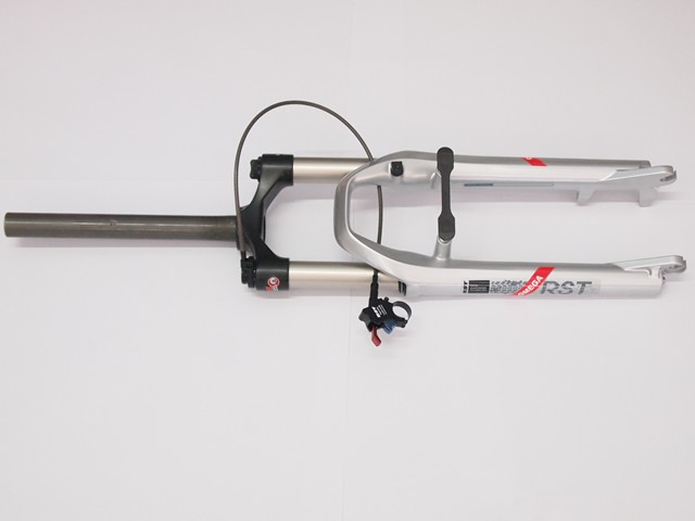 GARFO RST OMEGA REMOTE LOCK-OUT Fabricante: RST Modelo: OMEGA Tipo: REMOTE LOCK-OUT Material: Alumínio Medida aro: 26" Medida Espiga: 260mm x 1-1/8 Over Ahead set Comprimento Total: 750mm Peso: 2500kgrs Cor: Prata Suporte de Freios: Disco e V-brake