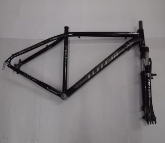 QUADRO E GARFO 29 TOTEM XTL GOLDEN WHEEL Fabricante: TOTEM Modelo: XTL Golden wheel. Tipo: Rígido Material: Alumínio Medida aro: 26" Medida 19 polegadas Peso Quadro/Garfo: 3950kgrs Movimento direção integrada.