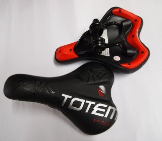 Selim TOTEM Sadle Spider infantil. Fabricante: Vader Modelo: Spider Material: exclusivo de Poliuretano Cor: Preto Peso: 415gr c/carrinho Dimensões: Comprimento 230mm x largura 140mm produto de ótima qualidade.