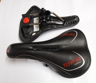 Selim TOTEM SADLE Vasado com Elastômero Fabricante: TOTEM Modelo: Vasado Material: exclusivo de Poliuretano Tipo: Com Elastomero Cor: Preto Peso: 600gr c/carrinho Dimensões: Comprimento 242mm x largura 150mm produto de alta qualidade.