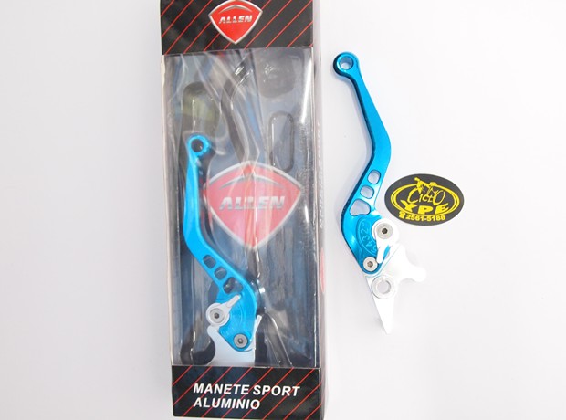 MANETE SPORT CBX 150/200/250/CB300R AZUL. Fabricante: ALLEN Modelo: SPORT Compativel- CBX 150/200/250/CB300R Material: Alumínio 6061 Cor: Azul.