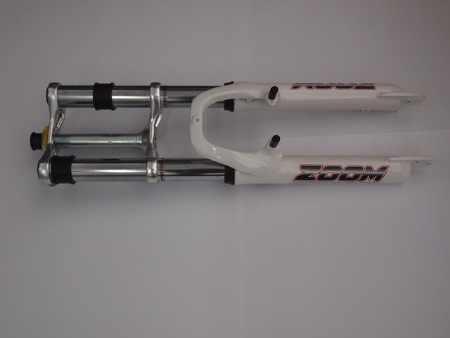 GARFO C/AMORTECEDOR DH ZOOM 26X22.2mm Fabricante: ZOOM Modelo: DH Tipo: amortecedor Material: Alumínio e aço Medida aro: 26" Medida Espiga: 180mm x 22.2mm c/rosca. Comprimento Total: 895mm Peso: 3100kgrs Cor: Branco Suporte de Freios: Disco e V-brake