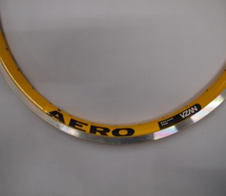 Aro Aero Vzan Escape 26"X 36F V-Brake Amarelo. Fabricante: Vzan Modelo: Escape Tamanho: 26" Tipo: Parede dupla Freios V-brake e Disco Furação: 36 Furos Material: Alumínio Peso: 500grs Cor: Amarelo