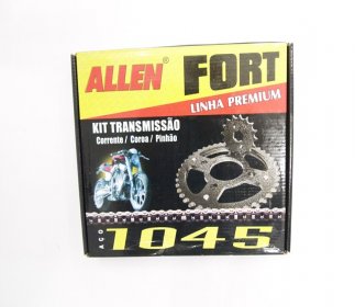 KIT-TRANSMISSÃO CORRENTE/COROA/PINHÃO-ALLEN. Fabricante: ALLEN Modelo Transmissão Tipo: LINHA PREMIUM Componentes- Corrente-coroa-pinhão.