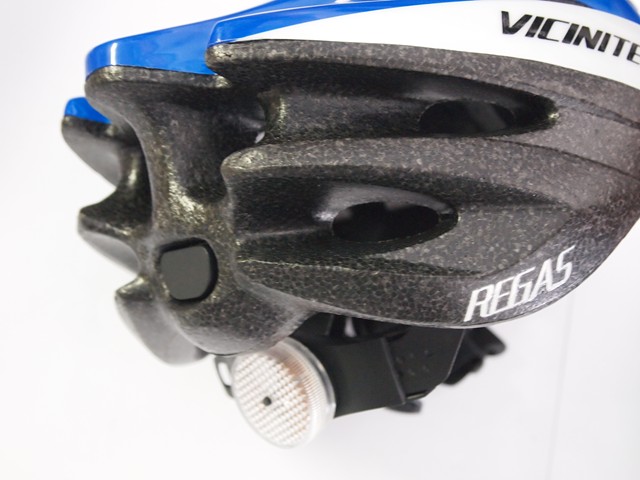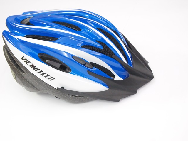 Capacete VICINI-REGAS C/ LED TRAS. C/ Regulagem. Fabricante: VICINI Modelo: REGAS Peso: 290gr aproximado Cores: Azul/branco. Tamanho: L-M Material: EPS Com Led Traseiro. Com Tela Anti-Foligem por dentro.